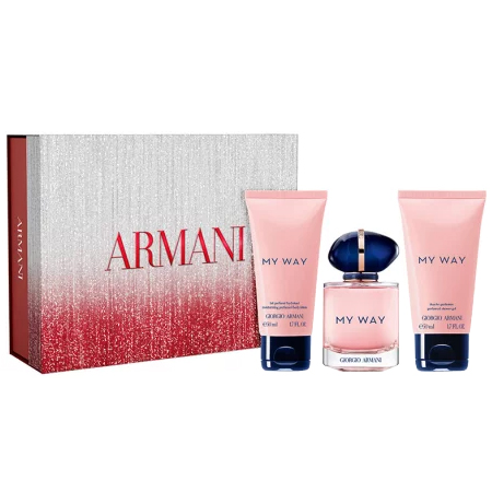 My Way van Giorgio Armani is een geparfumeerde vertaling van alle betekenisvolle ontmoetingen en fijne herinneringen. Een krachtig wit bloemenboeket in een talismanflacon, dat onze aarde symboliseert. Het parfum, uitgebracht in 2020 is een reis op zich. Het parfum bevat duurzame en solidair aangekochte ingrediënten van over de hele wereld. My Way opent met bergamot uit Calabrië en Egyptisch oranjebloesem. De geurige bloemen van de tuberoos komen uit India en de vanille wordt verkregen in Madagaskar. De flacon is ontworpen om eeuwig te koesteren en is eenvoudig na te vullen zonder een druppel te verliezen.